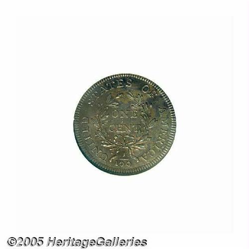 <B>1797<1C> Reverse of 1797, Stems MS62 Brown NGC.</B></I> S-138, R.1. Die State III. A boldly struck and gently shimmering piece. Light golden-brown color fills the obverse, with occasional wisps of mahogany toning near LIBERTY and the hair ribbon. The reverse has portions of chocolate-brown color, although deeper steel-blue patina is more prevalent. Some roughness is near RI in AMERICA, and a short pinscratch is under the E in CENT. However, both sides are unusually unmarked. The reverse die is misaligned a couple of degrees toward 12 o'clock; all legends are intact.