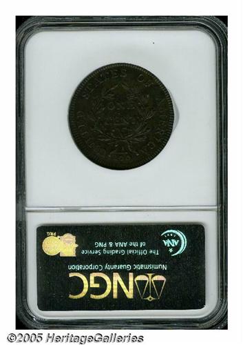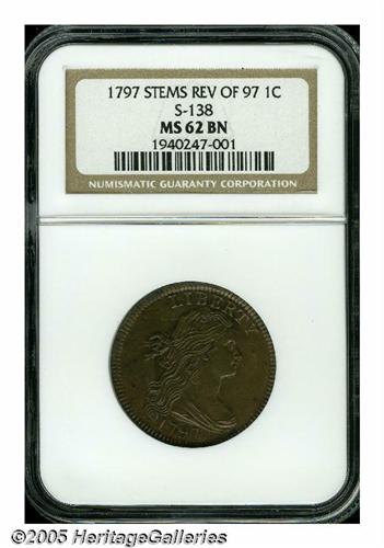 1797 1C Reverse of 1797, Stems MS62 Brown NGC. S-