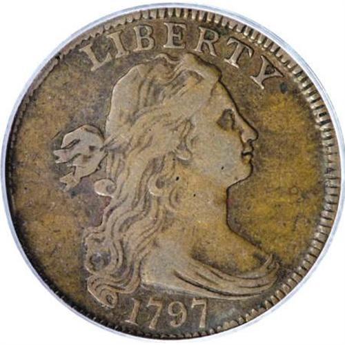 <B>1797 1C Reverse of 1797, Stems VF20 PCGS.</B></I> S-126, B-16, R.3. A pleasing mushroom-brown example that shows moderate, even wear across the devices. A slight rim bruise appears at the left obverse, but the fields and devices are generally clean. EAC 10.<BR><BR><B>Coin Engraver:</B> Robert Scot<BR><BR><b>Shipping:</b> Coins & Currency (<a target="_blank" href="http://www.heritageauctions.com/common/shipping.php">view shipping information</a>)