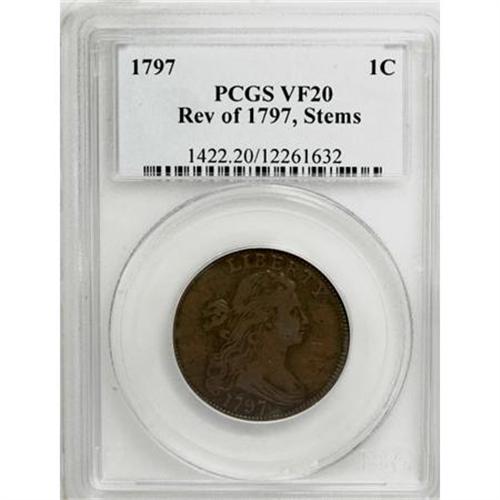 1797 1C Reverse of 1797, Stems VF20 PCGS