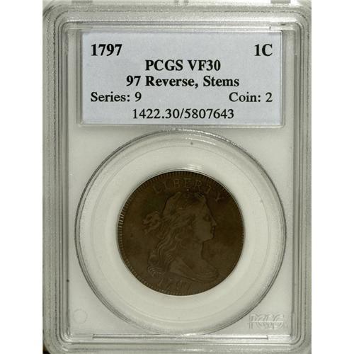 1797 1C Reverse of 1797, Stems VF30 PCGS. PCGS Populat