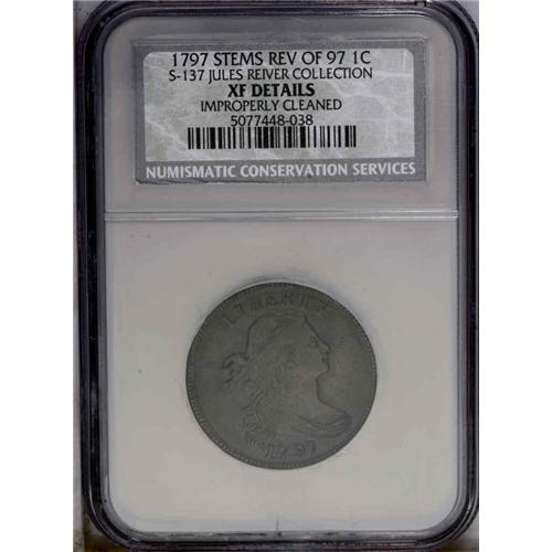 1797 1C Reverse of 1797, Stems XF40--Improperly Cleane 1797[1C] Reverse of 1797, Stems. S-137, B-8,