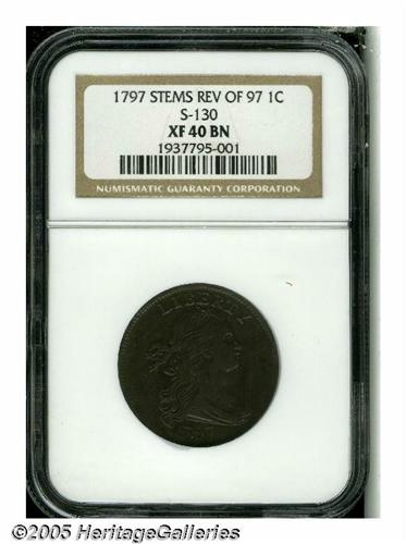 1797 1C Reverse of 1797, Stems XF40 NGC. S-130, R