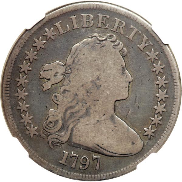 1797. 9 x 7 Small Letters B-2, BB-72 Rarity 4. NGC graded VG-8. Original even toning on problem-free surfaces; choice rims as well. Ideal for a Type Set.