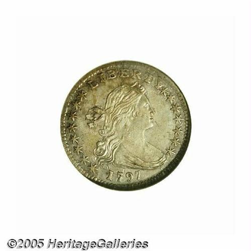 <B>1797<H10C> 15 Stars MS62 NGC.</B></I> LM-1, V-2, R.3. In June 1796, Tennessee was admitted as the 16th state in our young nation. It is generally accepted that coinage dies with 15 stars were produced prior to that month, and those with 16 stars after that month. Once Mint officials determined that they could not add additional stars, later dies were produced with 13 stars representing the original 13 states. Walter Breen often stated that those 1797-dated dies with only 15 stars were produced from dies that were actually made early in 1796, only without the final date digit. Although there is no documentary evidence to prove his theory, it may be that none is needed. This example has a "perfect" first seven, the top horizontal stroke having upper and lower vertical serifs, while the final digit 7 is imperfect, lacking its upper left serif. The entire shape of these two digits is different, showing they were produced from two different punches.<BR> This is a lovely Mint State example withy full luster and slightly prooflike fields. A few light scratches and abrasions have prevented a higher grade. The surfaces have light ivory color with amber and steel toning. Perfect obverse and reverse dies.