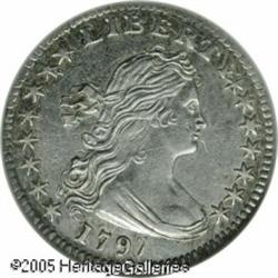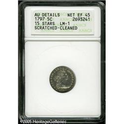 <B>1797 H10C 15 Stars--Scratched, Cleaned--ANACS. AU Details, Net XF45.</B></I> LM-1, V-2, R.3. Despite the qualifications by ANACS, this example is attractive with its reflective light silver surfaces. Numerous cleaning lines are visible along with a few other light scratches, mostly on the obverse. The strike is nearly full with slight weakness only at the central obverse and reverse. Struck from perfect dies. Lot:6098