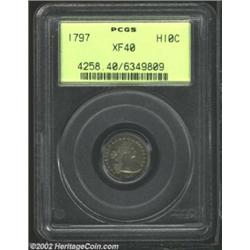 1797 H10C XF40 PCGS. V-3, LM-3, R.5. After V-1, V-3 is the rarest die marriage of the 1797 Half Dime