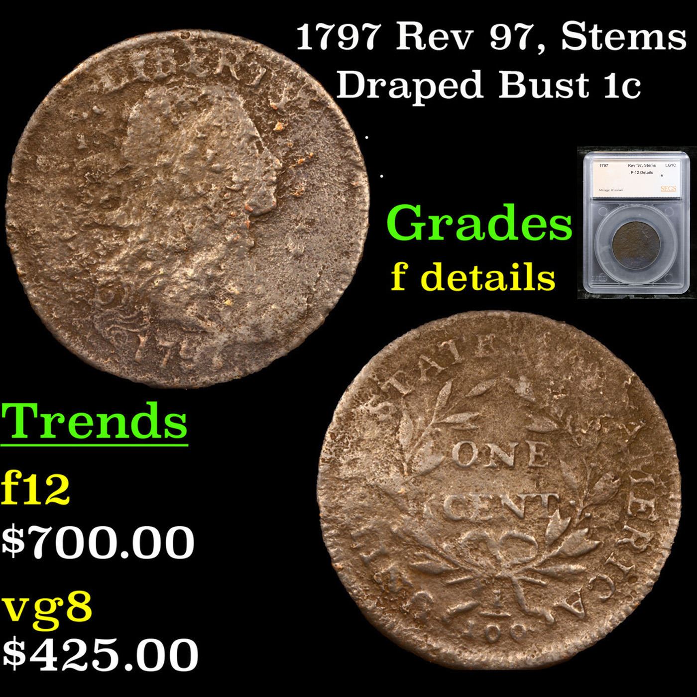 1797 Rev 97, Stems Draped Bust Large Cent 1c Grades f12 Details by SEGS