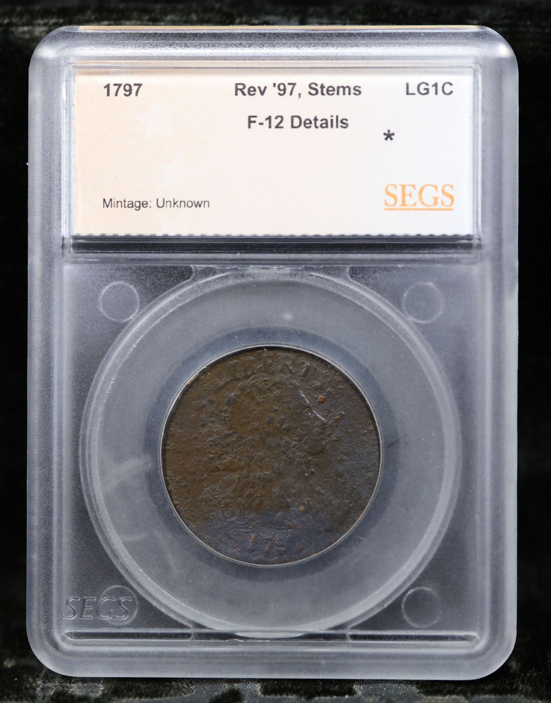 1797 Rev 97, Stems Draped Bust Large Cent 1c Grades f12 Details by SEGS.
