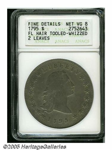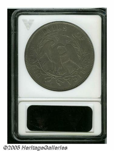 <B>1797<S$1> 9x7 Stars, Large Letters--Tooled, Repaired, Corroded, Cleaned--ANACS. VF Details, Net VG8.</B></I> B-3, BB-71, R.2. Deep gold and violet gray surfaces, lightly pockmarked and well circulated, especially on the left obverse and reverse where much of the detail is gone.