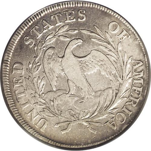 <B>1797<img border='0' src='http://www.heritagecoins.com/images/star.gif' width=10 height=10>$1> 9x7 Stars, Large Letters VF20 PCGS.</B></I> B-1, BB-73, R.3. Lavender and cobalt-blue occupies the obverse border, while the remainder of this circulated example is battleship-gray. Each side has a couple of minor rim dings, but no other abrasions are remotely worth discussion. From a late die state with numerous slender obverse cracks. Encapsulated in a green label holder.