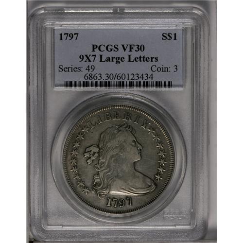 1797 S$1 9x7 Stars, Large Letters VF30 PCGS. B-1, BB-7