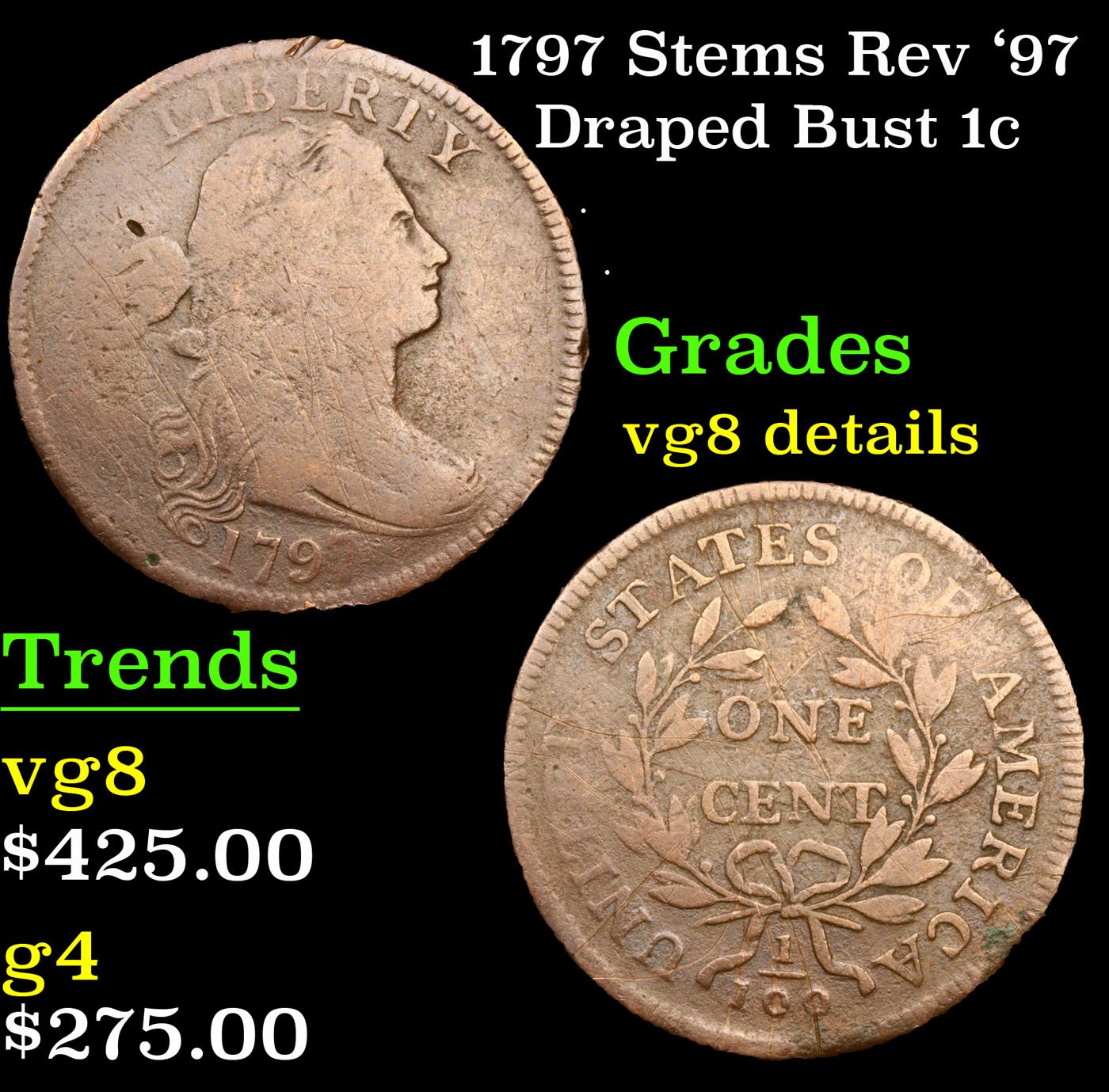 1797 Stems Rev '97 Draped Bust Large Cent 1c Grades VG Details.