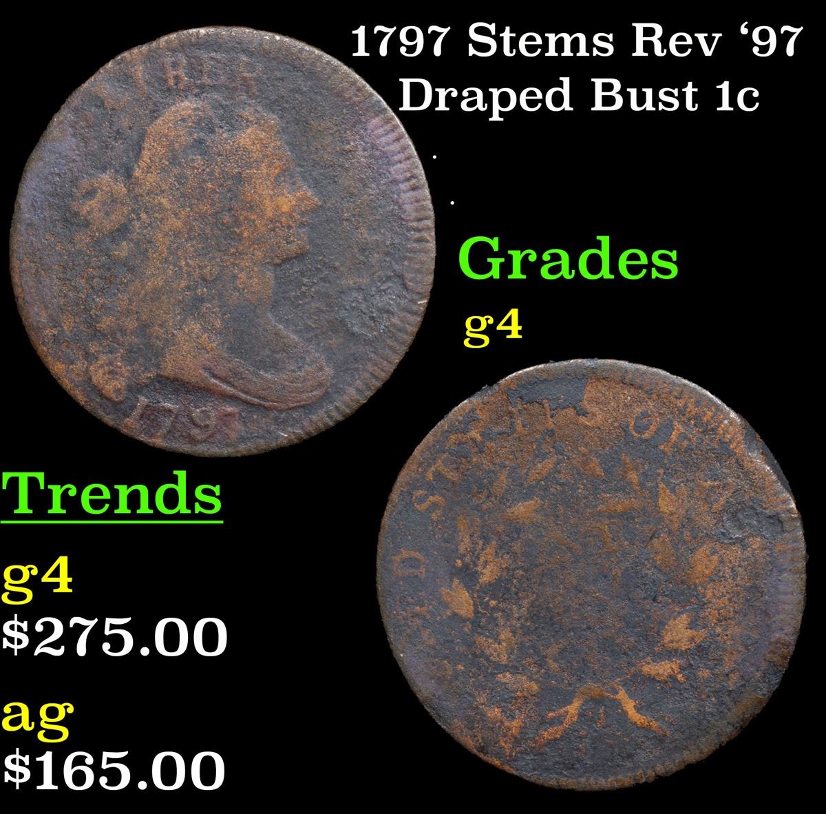 1797 Stems Rev '97 Draped Bust Large Cent 1c Grades g, good.