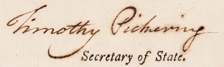 Timothy Pickering (July 17, 1745 – January 29, 1829) was a politician from Massachusetts who served in a variety of roles, most notably as the third United States Secretary of State, serving in that office from 1795 to 1800 under Presidents George Washington and John Adams.