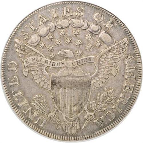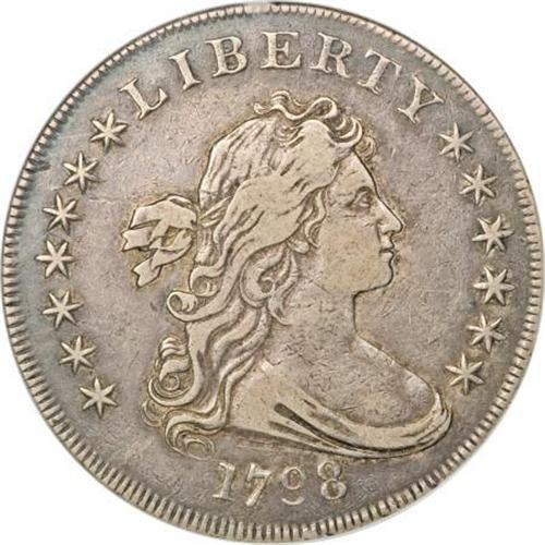 <B>1798 $1 Large Eagle, Pointed 9 XF40 NGC.</B></I> B-11, BB-111, R.3. Bowers-Borckardt Die State I, but a faint diagonal die crack is visible above the ear, which becomes prominent in Die State V. Luster resides within design recesses, and no consequential marks are present. Well defined despite moderate wear on the cheek, shoulder, and hair. B-11 is unexpectedly rare above XF, with none listed as AU in the 1993 Bowers reference.<BR><BR><B>Coin Engraver:</B> Robert Scot<BR><BR><b>Shipping:</b> Coins & Currency (<a target="_blank" href="http://www.heritageauctions.com/common/shipping.php">view shipping information</a>)