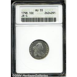 <B>1798<10C> Large 8 AU55 ANACS.</B></I> JR-4, R.3. A later die stage with mint-made die breaks on the right reverse rim and a crack through the Y in LIBERTY. Lustrous and splendidly detailed with only a hint of friction on the shoulder and cheek of Liberty. Light apricot patina confirms the originality. A couple of faint pinscratches in the obverse field constitute the only noticeable contact. The reverse is unmarked and very attractive.<BR><I>From The Willamette Collection.</B></I> <BR><BR><B>Important notice:</B> Heritage usually auctions material at the rate of 200-250 lots per hour. On some occasions eBay Live bid software or the Internet may not be able to keep up with the pace of the auction. We recommend placing a realistic absentee bid now as insurance to avoid disappointment. Occasionally the auctioneer may eliminate or reject an eBay Live bid, and the auctioneer may also reopen a lot after the close of the eBay live bidding (usually because we missed an audience bid), and may reject your bid even if it shows you as the winning bidder. By bidding via eBay Live, you agree that Heritage may award the lot to another bidder at its sole discretion under the circumstances described above or any other reasonable circumstances. Since eBay bids are not shown to us until we open the lot on the floor, we treat those bids just like floor bids. In most cases the floor responds before the eBay bid is presented to us, due to Internet lag time, so for consistency we have made it a policy that floor bids are always considered first over tie eBay live bids. Also please note that all Heritage lots purchased through eBay Live carry a 20% Buyer's Premium. Please make sure you read the Terms and Conditions before you bid. </span></font></tr></table></td></tr></table>