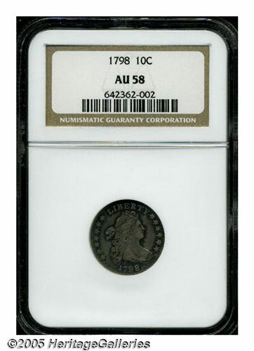 1798 10C Large 8 AU58 NGC. JR-4, R.3. Lavender an