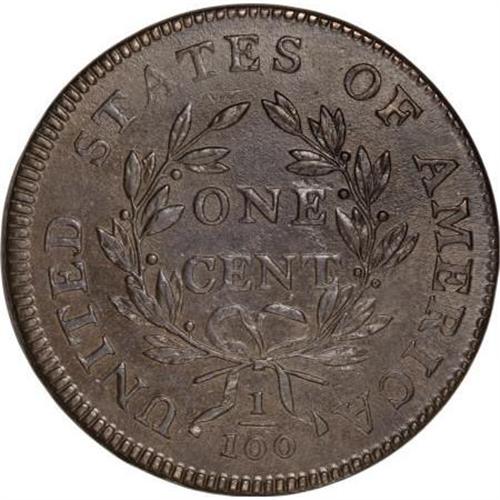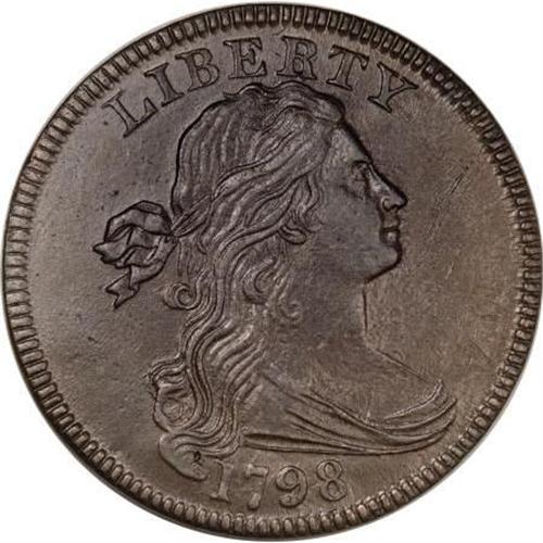 <B>1798 1C First Hair. MS62 Brown PCGS. S-164, B-20, R.4.</B></I> <B>Bland AU55; CC-1. Noyes AU55; CC-1. Photo #23072. Our EAC Grade AU55.<BR><BR>Equivalents.</B></I> Proskey 15; Doughty 123; McGirk 12A; Clapp 24; EAC 11; <I>Encyclopedia </B></I>1723; PCGS #1431.<BR><B><BR>Variety. </B></I>Style I Hair. LIB close, R almost touches hair. Right ribbon and bow incomplete. The obverse appears on S-164. The reverse appears on S-164.<BR><B><BR>Surfaces.</B></I> Exceptional golden-brown color with deeper olive highpoints and pristine surfaces. The appearance of surface roughness on the obverse is related to the die state, rather than later handling. Partially Reeded Edge.<BR><B><BR>Die State IV. </B></I>The obverse has die roughness, scaling, and heavy clash marks, including part of AMERICA in the right obverse field.<BR><B><BR>Appearances. </B></I>The obverse and reverse are illustrated in Clapp, <I>Early American Cents</B></I>, <I>Penny Whimsy</B></I> and Breen's <I>Large Cent Encyclopedia</B></I>.<BR><BR><B>Census. </B></I>Bland and Noyes both grade this piece AU55 and rank it as the finest known S-164.<BR><BR><B>Commentary. </B></I>Sheldon recorded a Census of 65-55-40-30-30-30 in <I>Penny Whimsy</B></I>. Today, Del Bland grades the top six coins known in Sheldon's time as 55-50-50-45-45-40.<BR><BR><B>Provenance. </B></I><I>Discovered in England by Elmer S. Sears (1922); Henry C. Hines (1944); Dr. William H. Sheldon (4/1972); R. E. Naftzger, Jr. (New Netherlands Coin Co., 11/1973), lot 479, $1,100; Myles Z. Gerson; Jerry A. Bobbe; Jack H. Beymer (11/1975); C. Douglas Smith; Dr. Robert Schuman (Superior, 5/2003), lot 453, $28,750.</B></I><BR><BR><B>Personality. Elmer S. Sears</B></I> was born in Fall River, Massachusetts on March 13, 1874, and died in Swansea, Massachusetts, on September 23, 1937. He was a coin dealer and the discoverer of the 1803 NC-1 large cent. Sears provided financial assistance to Wayte Raymond for his United States Coin Company enterprise.<BR><BR><b>Shipping:</b> Coins & Currency (<a target="_blank" href="http://www.heritageauctions.com/common/shipping.php">view shipping information</a>)