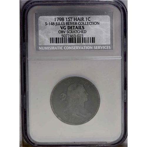 1798 1C First Hair Style--Obverse Scratched--NCS. 1798[1C] First Hair Style. S-148, B-11, R.2--Obver
