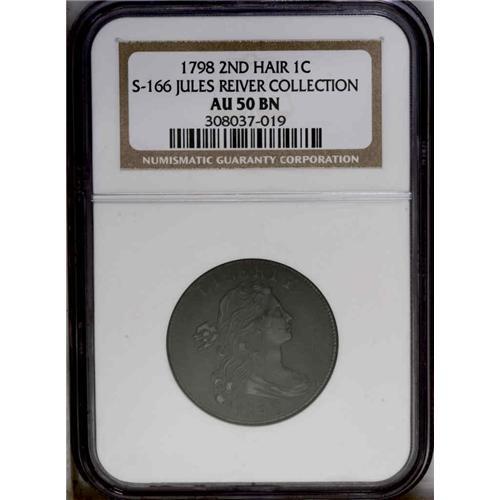 1798 1C Second Hair Style AU50 NGC. S-166. B-32, R.1. 1798[1C] Second Hair Style. S-166, B-32, R.1.