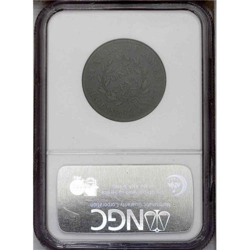 <B>1798<1C> Second Hair Style. S-187, B-40, R.1. VF30 NGC. VF20 EAC.</B></I> Dark chocolate-brown on the obverse with darker steel-brown on the reverse. The surfaces are lightly blemished, consistent with the grade with a few small circulation marks and traces of verdigris and corrosion on the reverse. This is the earliest die state with an obverse crack through TY to the border at 3 o'clock. The reverse has a slight die crack through the bases of CA, mentioned by Breen for his State II, however, the secondary crack of State I is not readily apparent.<BR><I>Ex: Jim McGuigan.</B></I> Envelope Included.