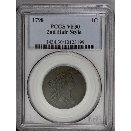 1798 1C Second Hair Style VF30 PCGS. S-166, R.1. The p