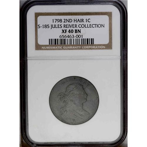 1798 1C Second Hair Style XF40 NGC. S-185. B-46, High 1798[1C] Second Hair Style. S-185, B-46, High