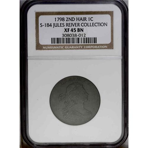 1798 1C Second Hair Style XF45 NGC. S-184. B-45, Low R 1798[1C] Second Hair Style. S-184, B-45, Low