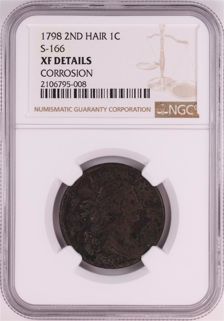 One 1798 2nd Hair S-166 Draped Bust Large Cent Coin NGC XF Details. NGC Certified.