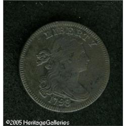 <B>1798/7 1C XF40 Corroded Uncertified.</B></I> S-151, High R.3. Deep, even, charcoal-gray color covers both sides with finely granular surfaces. A bit irregularly struck, but better struck on the obverse than usually seen. Lot:5126