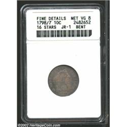1798/97 10C 16 Stars on Reverse--Bent--ANACS. Fine Details, Net VG8. JR-1, R.3. Although a slight be
