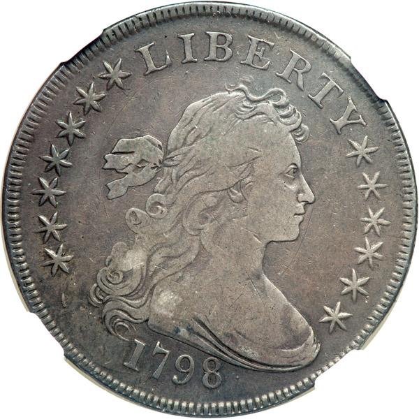 1798 Bust $1. Heraldic Eagle, 10 Arrows NGC VF25