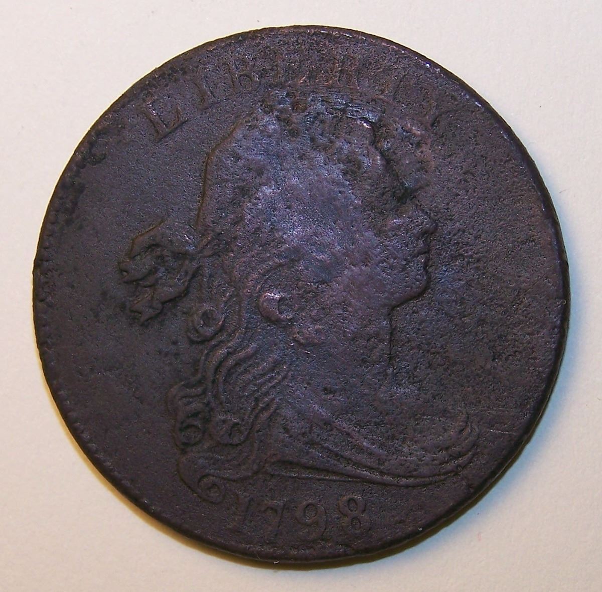 2012 ANACS VF 20 details. Corroded; tooled. Style 2 hair, extra curl near shoulder. Deep warm mahogany, with hint of olive. Granularity and some pockmarking seen in enlarged photograph, else an affordable example of this early Draped Bust cent. Acquired by consignor c. 1960s.