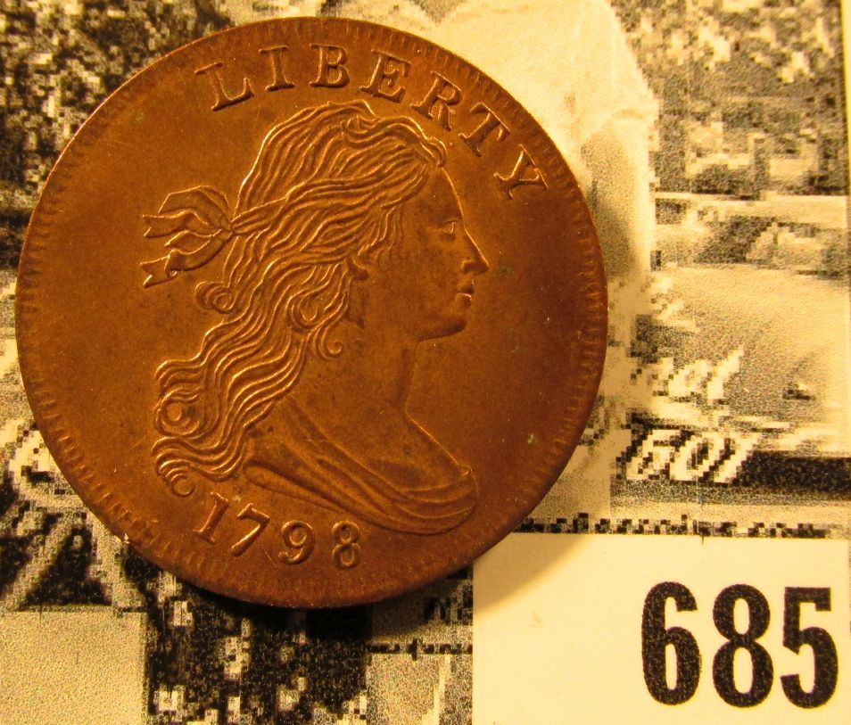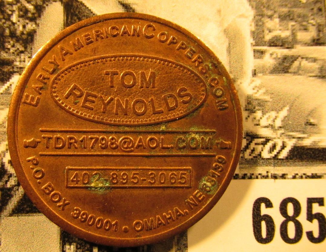 1798 Draped Bust Cent advertising copy "EarlyAmericanCoppers.com/Tom Reynolds/…Omaha, Ne.68139".