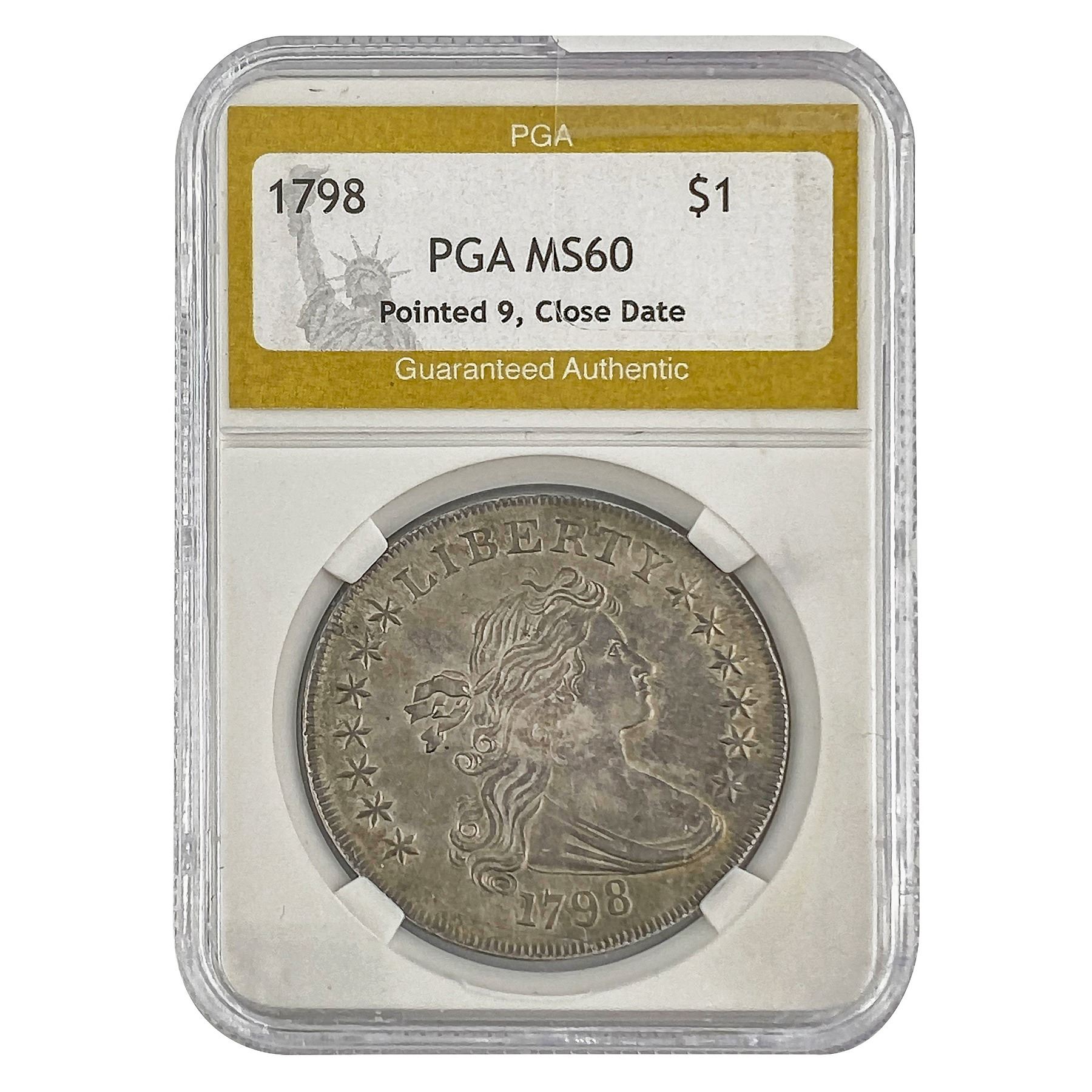 1798 Draped Bust Dollar PGA MS60 Pointed 9, Close Date