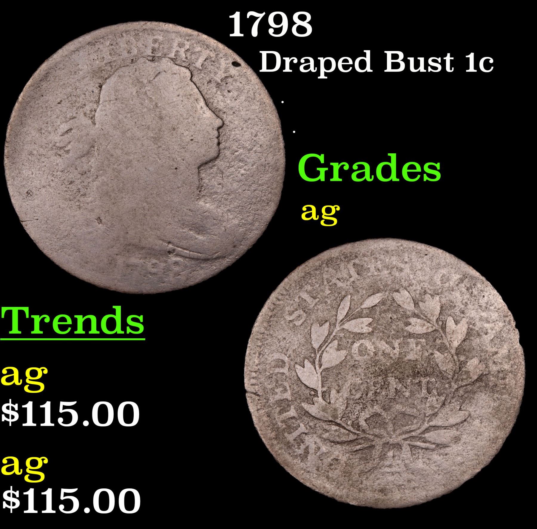 1798 . . Draped Bust Large Cent 1c Grades ag.