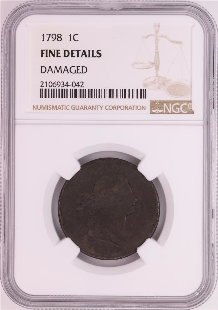 One 1798 Draped Bust Large Cent Coin NGC Fine Details. NGC Certified.