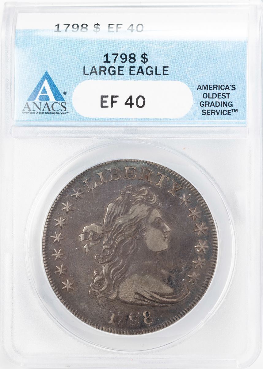 One 1798 Large Eagle $1 Draped Bust Silver Dollar Coin ANACS XF40.