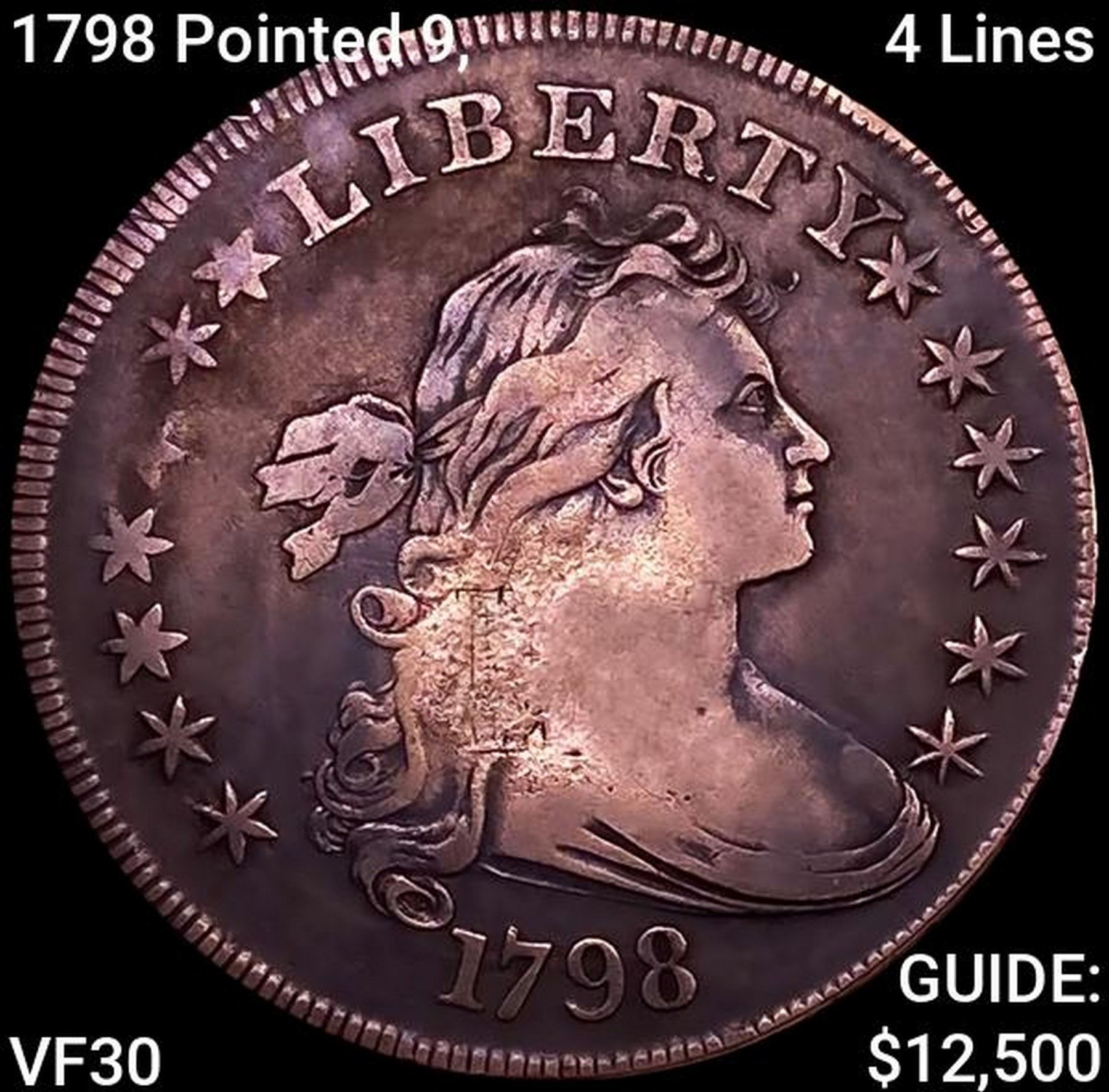 1798 Pointed 9, 4 Lines Draped Bust Dollar LIGHTLY CIRCULATED
