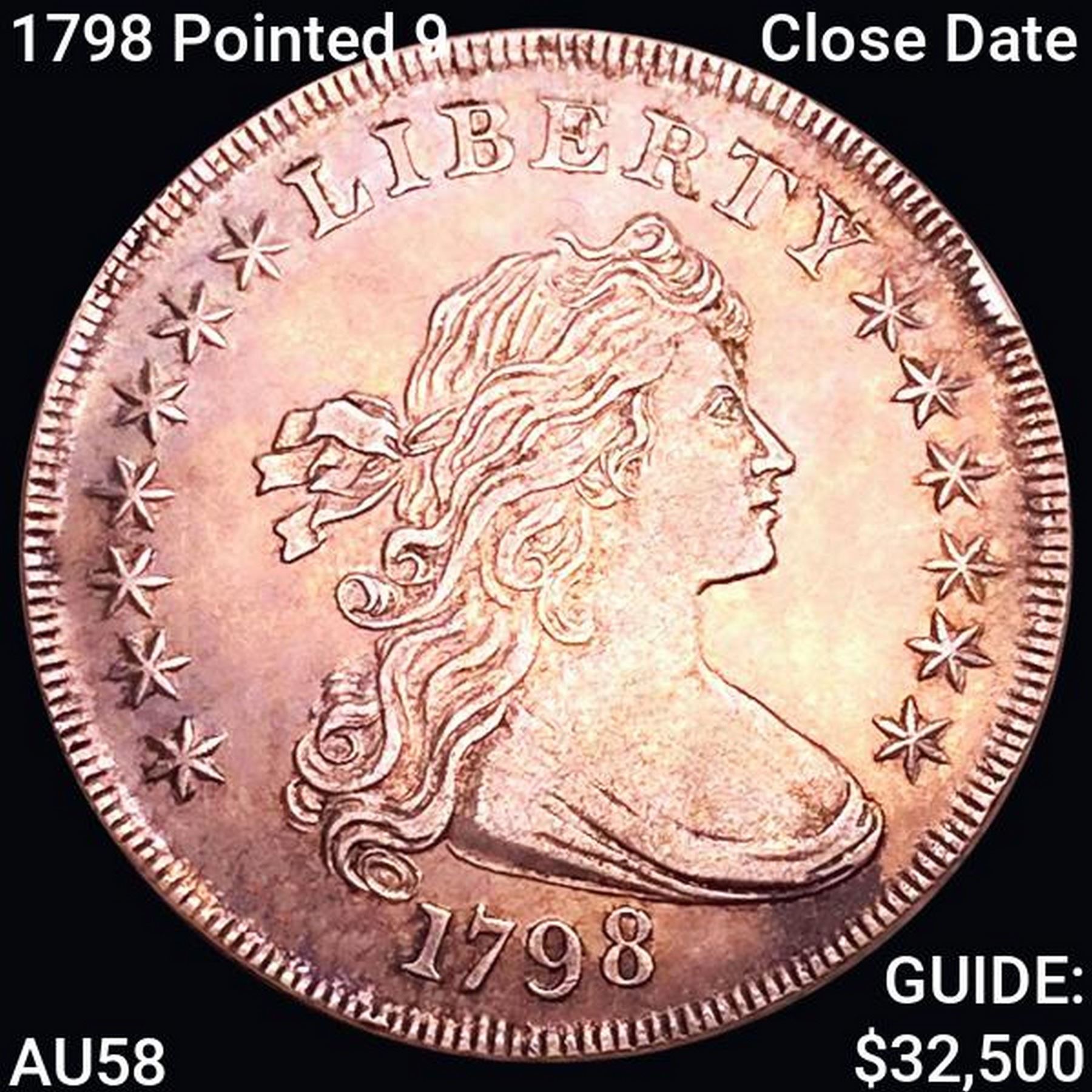 1798 Pointed 9 Close Date Draped Bust Dollar CHOICE AU