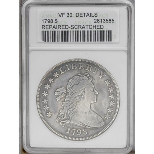 1798 S$1 5 Stripes--Repaired, Scratched--ANACS. VF30 D 1798[img border='0' src='http://www.heritagec
