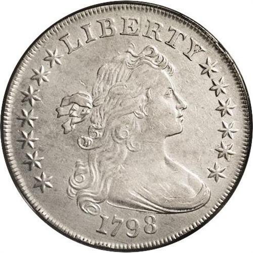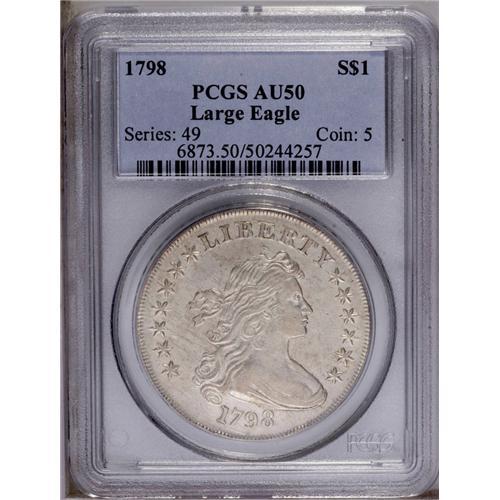 1798 S$1 Large Eagle AU50 PCGS. B-31, BB-115, R.5. The 1798[img border='0' src='http://www.heritagec