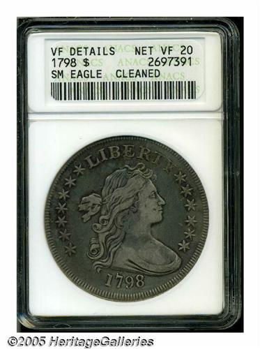 1798 S$1 Small Eagle, 13 Stars--Cleaned--ANACS. V