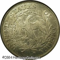 1798 S$1 Small Eagle, 13 Stars XF40 NGC. B-1, BB-8 <B>1798 S$1 Small Eagle, 13 Stars XF40 NGC.</B></I> B-1, BB-82. A perfectly balanced, lightly worn Small Eagle Dollar that presents a brilliant gray finish overall. The diagnostic reverse die cracks outline much of the reverse and are most obvious at the second T in STATES. A couple of minor marks in the reverse field surrounding the eagle hardly detract. <BR><BR><B>Important notice:</B> Heritage usually auctions material at the rate of 200-250 lots per hour. On some occasions eBay Live bid software or the Internet may not be able to keep up with the pace of the auction. We recommend placing a realistic absentee bid now as insurance to avoid disappointment. Occasionally the auctioneer may eliminate or reject an eBay Live bid, and the auctioneer may also reopen a lot after the close of the eBay live bidding (usually because we missed an audience bid), and may reject your bid even if it shows you as the winning bidder. By bidding via eBay Live, you agree that Heritage may award the lot to another bidder at its sole discretion under the circumstances described above or any other reasonable circumstances. Since eBay bids are not shown to us until we open the lot on the floor, we treat those bids just like floor bids. In most cases the floor responds before the eBay bid is presented to us, due to Internet lag time, so for consistency we have made it a policy that floor bids are always considered first over tie eBay live bids. Also please note that all Heritage lots purchased through eBay Live carry a 20% Buyer's Premium. Please make sure you read the Terms and Conditions before you bid. This lot is being auctioned in conjunction with a live floor auction by Heritage Galleries & Auctioneers. All final auction and invoice information will be supplied by Heritage Galleries & Auctioneers, and all other information should be considered preliminary. Lot:6364