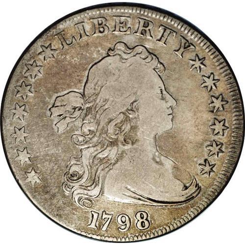 1798 S$1 Wide Date. B-12, BB-120, R.3. VG8 NGC. Wide d 1798[S$1] Wide Date. B-12, BB-120, R.3. VG8 N