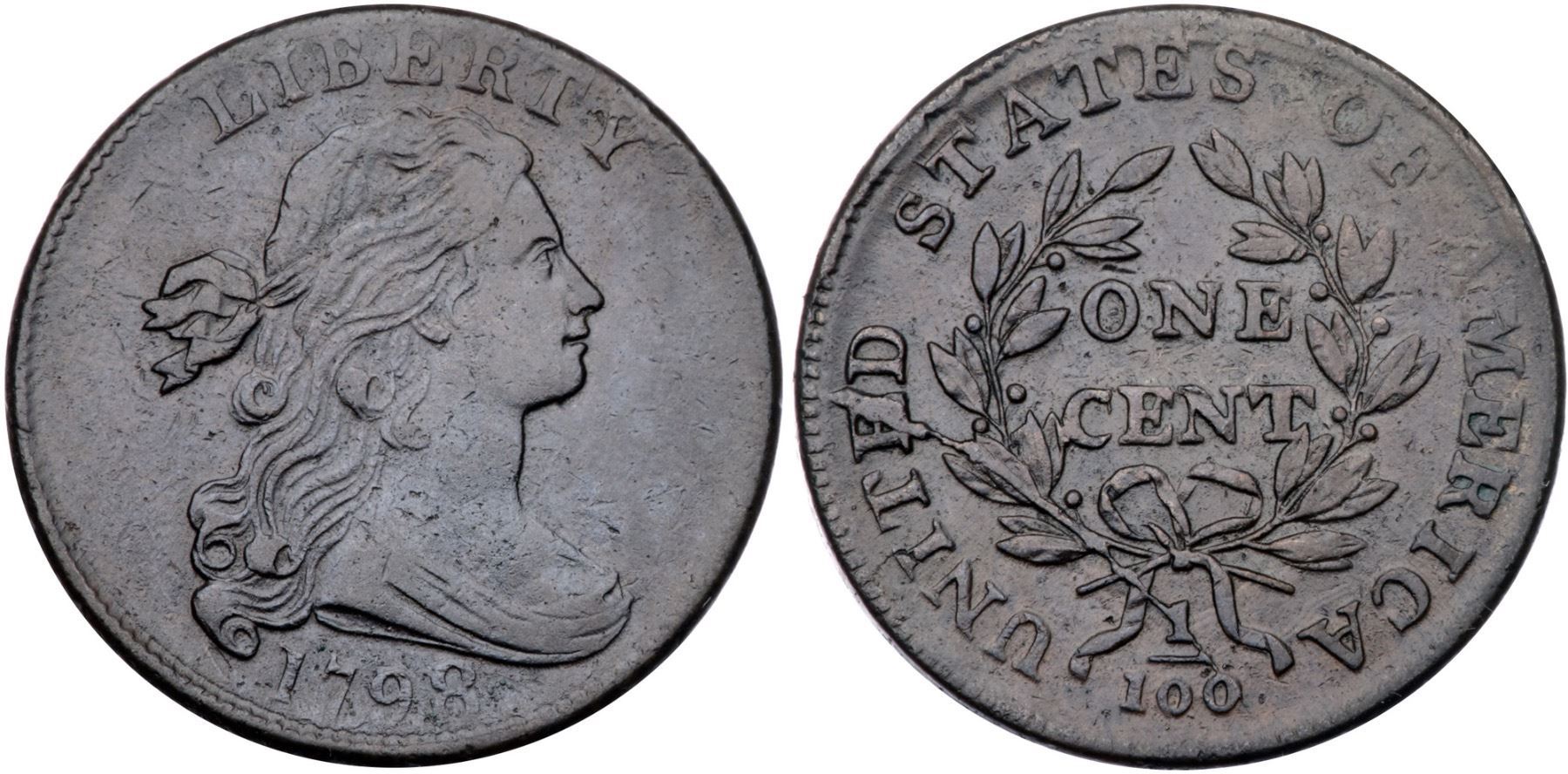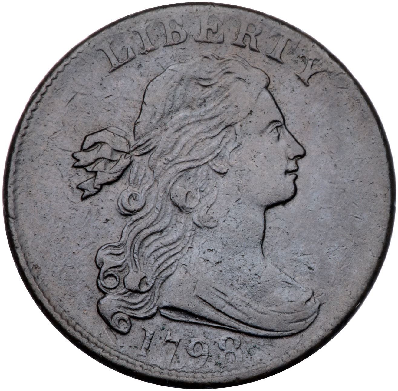 1798 S-166 R1 Large 8, Style II Hair VF25Glossy steel brown and chocolate with microscopic specks of slightly darker olive brown covering the obverse. These specks are only visible under magnification. The only marks are extremely tiny ticks and planchet chips scattered over the obverse. Lightly worn with the hair details of a higher grade, but a bit unevenly struck, as nearly always for this variety. A light diagonal nick tucked under the lowest curl is the best identifying mark. M-LDS, Breen state VI early, with cracks, clashmarks, and small rim cuds.Certificate Number: Pedigree: From the Fred H. Borcherdt Collection