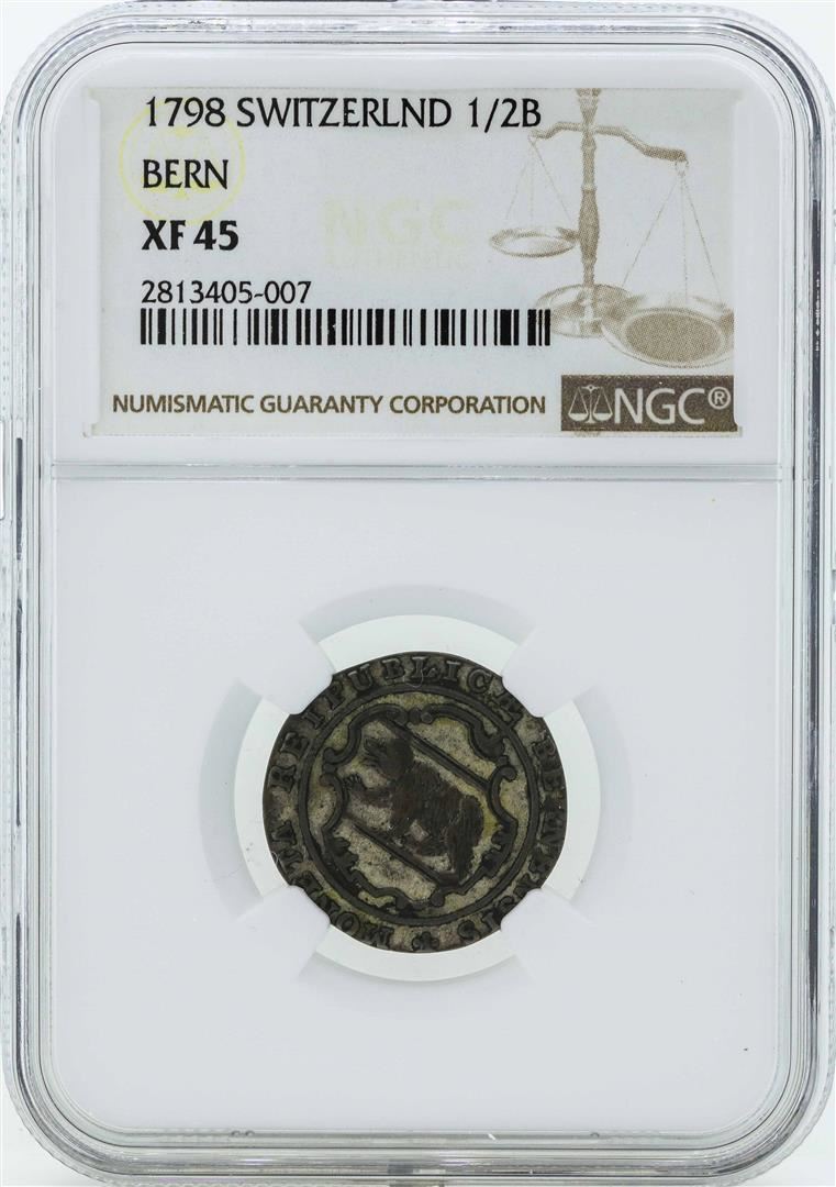 One 1798 Switzerland 1/2 Batzen Coin NGC XF45. NGC Certified.