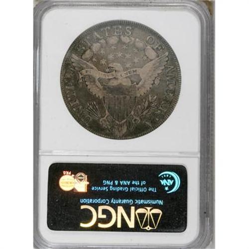 <B>1799 $1 7x6 Stars Fine 15 NGC.</B></I> B-9, BB-166, R.1. Cream-gray and lavender shades alternate across this evenly circulated but problem-free early dollar. Most letters in E PLURIBUS UNUM are clear. The die lump after the second S in STATES inspires the "Apostrophe" nickname for the B-9 variety.<BR><BR><B>Coin Engraver:</B> Robert Scot<BR><BR><b>Shipping:</b> Coins & Currency (<a target="_blank" href="http://www.heritageauctions.com/common/shipping.php">view shipping information</a>)