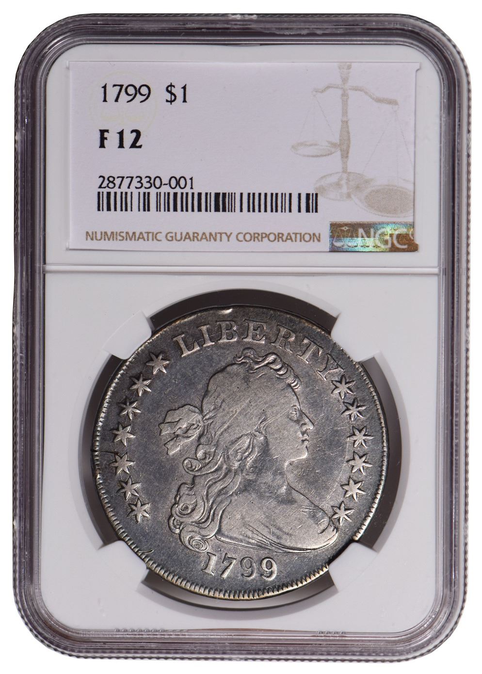 One 1799 $1 Draped Bust Dollar NGC F12.